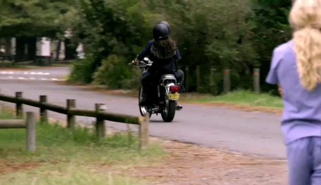 We then cut back to a shot of Remi and Bree embracing before cutting to a shot of Remi and Mercedes joking around on the beach. Mercedes arrives on her motorcycle and abruptly ends their conversation.