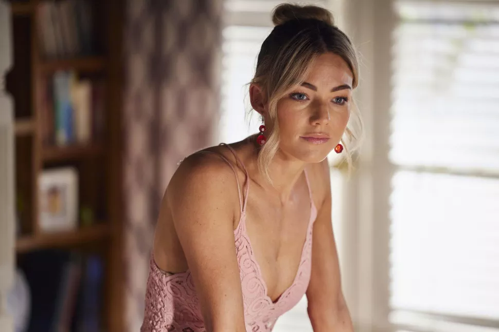 It’s the morning after the previous night, and a hungover Jasmine Delaney (Sam Frost) is embarrassed by her drunken attempts to seduce lover Cash Newman (Nicholas Cartwright).